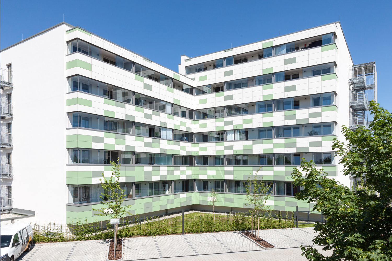 Das Gebäude umfasst insgesamt 137 Wohneinheiten und 189 Parkplätze.