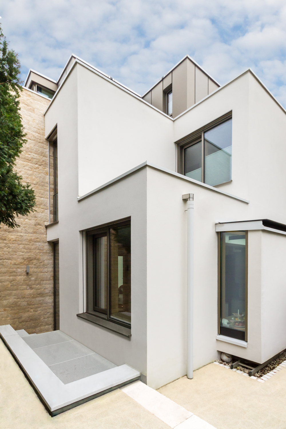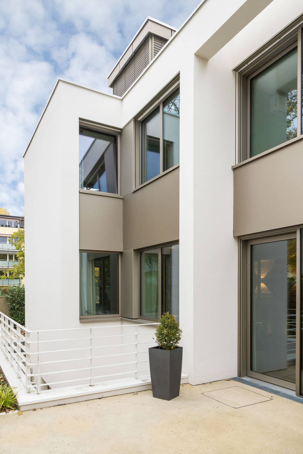 Direkt am Englischen Garten sollte auf einem Grundstück mit ungünstigem Zuschnitt und bestehender Grenzbebauung ein Einfamilienhaus mit maximaler Wohnfläche errichtet werden.