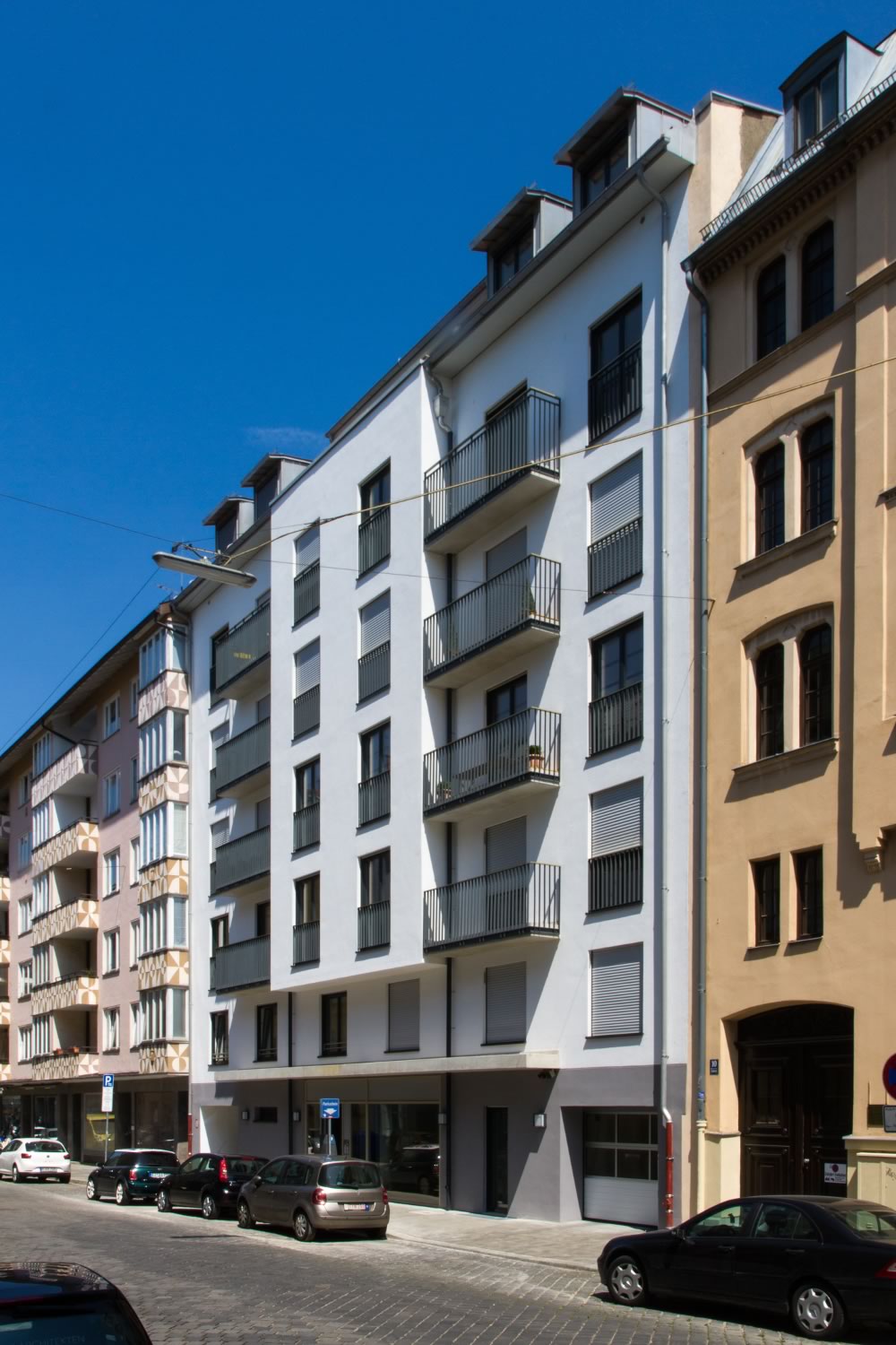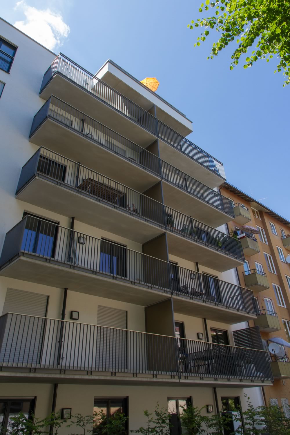 Nach Insolvenz einer Bauträgergesellschaft und einem damit verbundenen knapp 1-jährigen Baustopp wurde im Auftrag der neuen Eigentümergemeinschaft ein Mehrfamilienhaus mit 12 Wohneinheiten und Tiefgarage in München-Schwabing fertiggestellt.