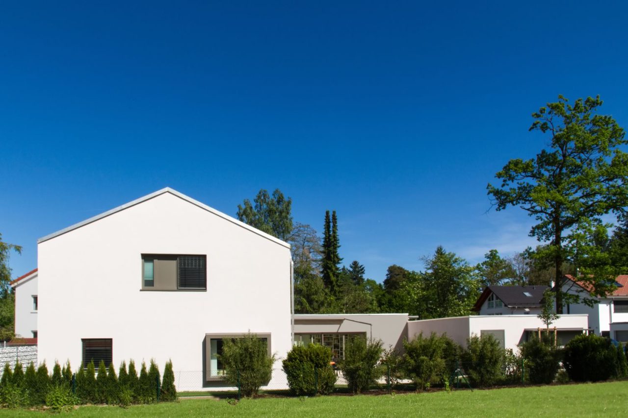 Direkt am Englischen Garten sollte auf einem Grundstück mit ungünstigem Zuschnitt und bestehender Grenzbebauung ein Einfamilienhaus mit maximaler Wohnfläche errichtet werden.