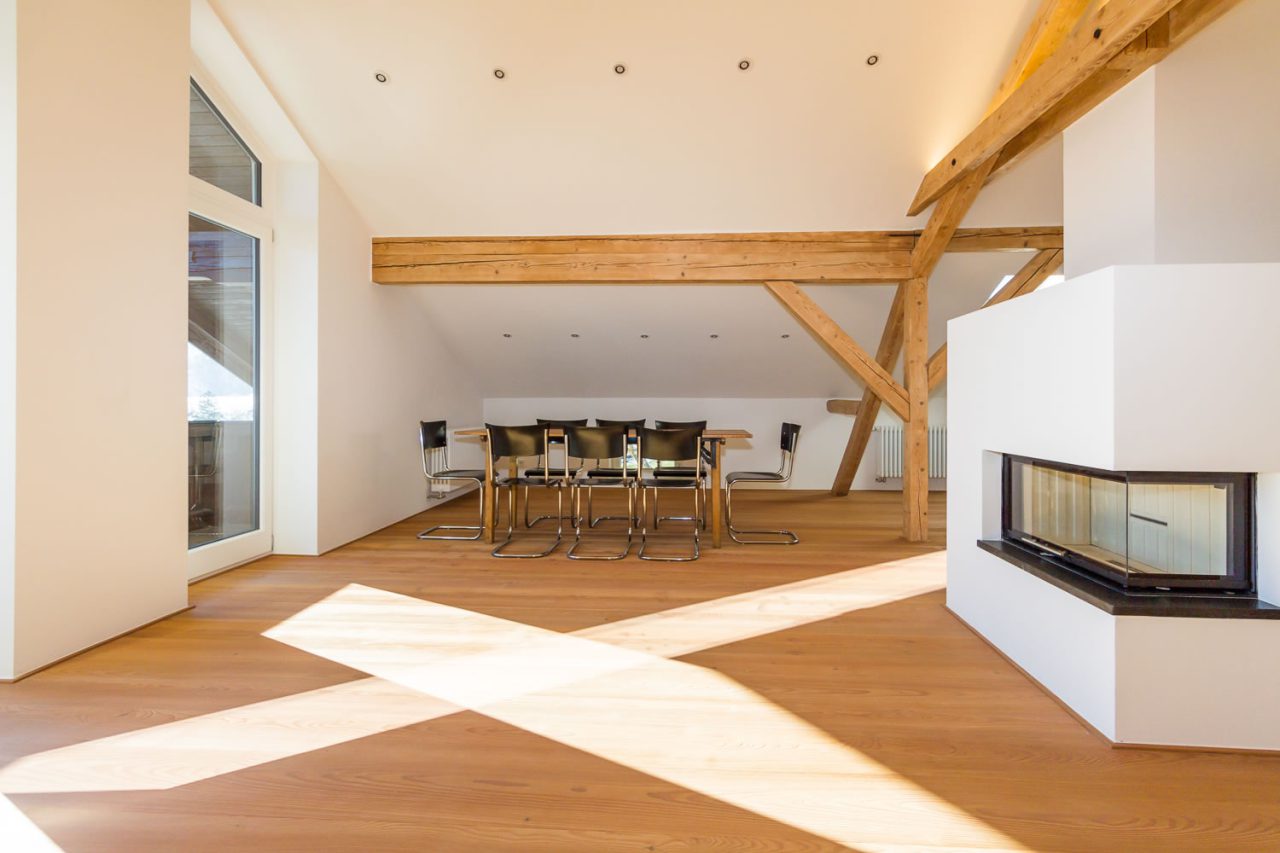 Das Einfamilienhaus am Schliersee mit einzigartigen Panoramablick und charmanter Hanglage wurde ca. 60 Jahre nach Errichtung grundsaniert und den neuen Bedürfnissen angepasst. Der bis dato nicht genutzte Speicher wurde neu ausgebaut und mit raumhohen Fenstertüren mit Blick auf die Alpen versehen.