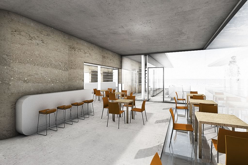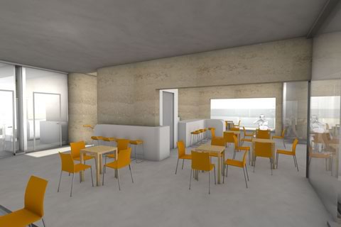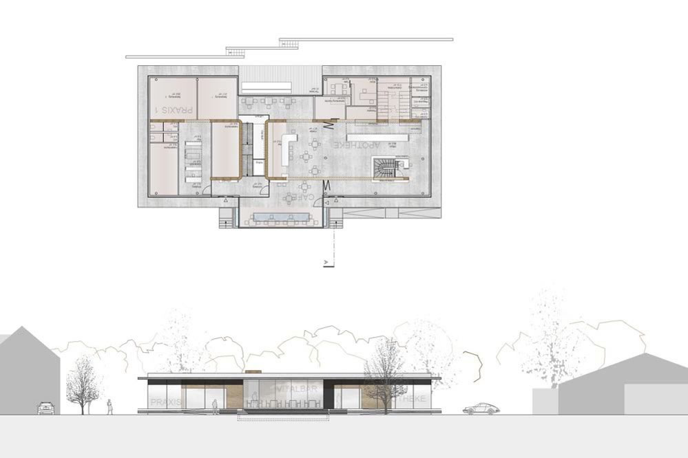 Von dem öffentlichen Cafe als Gebäudemittelpunkt erschließen sich drei Artzpraxen und eine Apotheke. Die Nutzung von Synergieeffekten war hierbei grundlegende Entwurfsaufgabe.